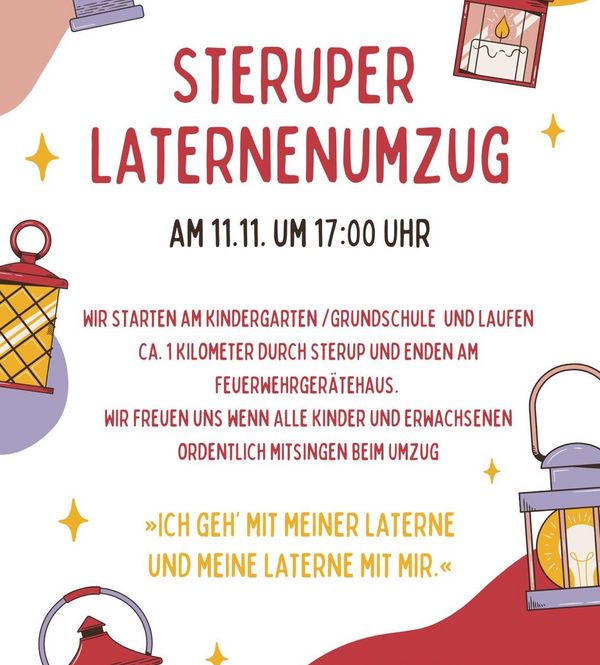 am Dienstag 11.11. findet das alljährliche Steruper Laternelaufen statt.