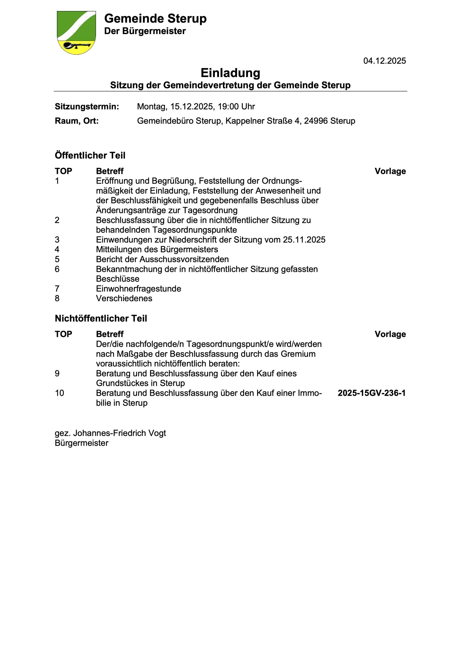 Vertreter und Ausschussmitglieder der Gemeinde Sterup Stand 01.08.2024